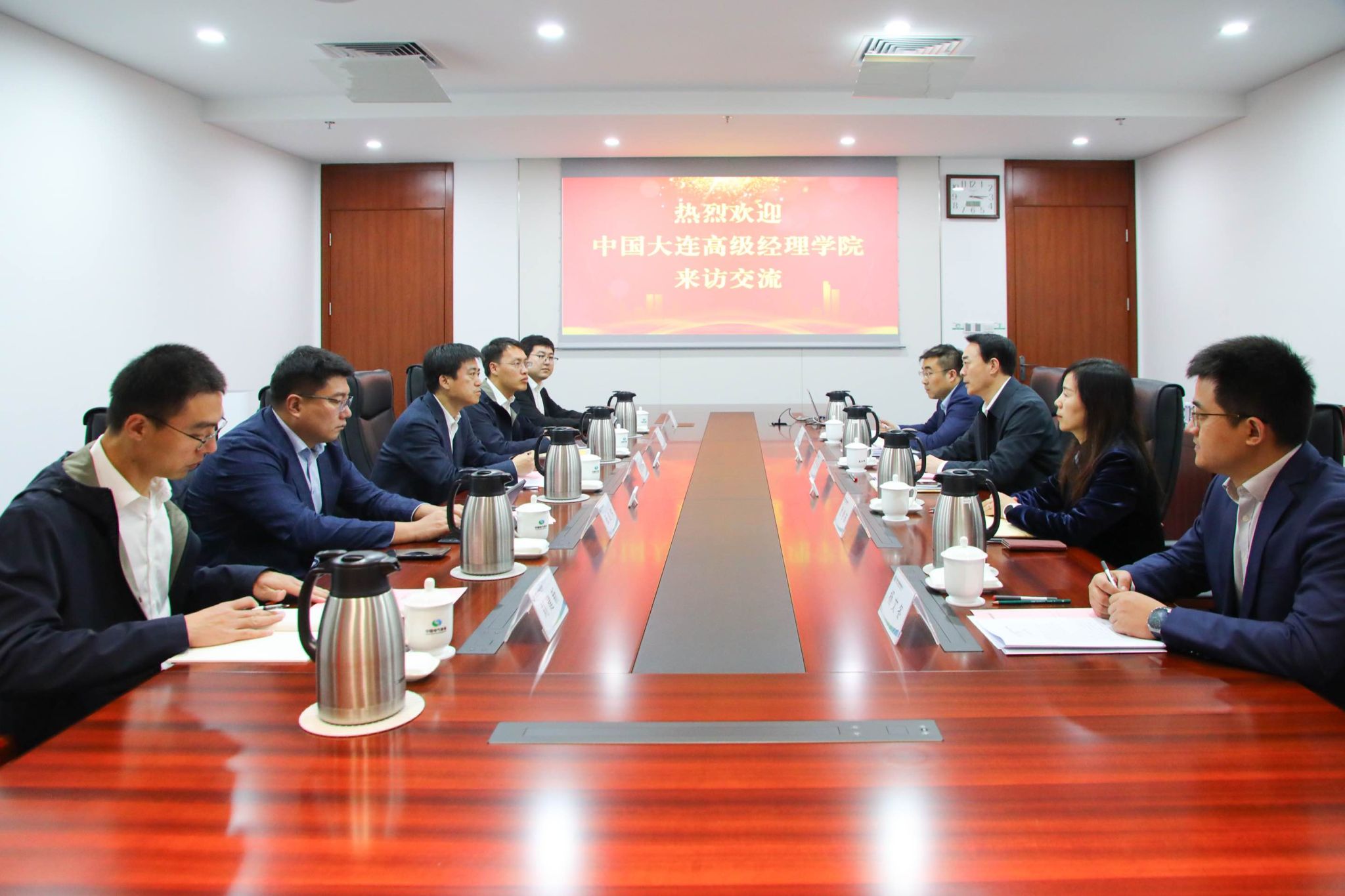 中國大連高級(jí)經(jīng)理學(xué)院教務(wù)部、網(wǎng)絡(luò)培訓(xùn)部相關(guān)負(fù)責(zé)人;集團(tuán)公司黨委組織部主要負(fù)責(zé)人參加會(huì)談。