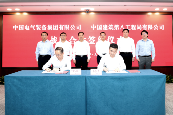 在與會領導的共同見證下,朱安珂、王華平分別代表中國電氣裝備和中建八局簽署戰(zhàn)略合作框架協(xié)議。