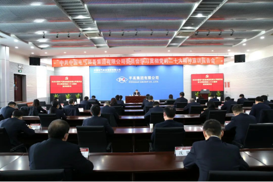 12月14日,集團(tuán)公司黨委副書記、總經(jīng)理周群到平高集團(tuán)宣講黨的二十大精神。他強(qiáng)調(diào),學(xué)習(xí)宣傳貫徹黨的二十大精神是全黨全國當(dāng)前和今后一個時期的首要政治任務(wù),要多角度、多層次、多形式深入學(xué)習(xí)宣傳貫徹黨的二十大精神,切實把學(xué)習(xí)成果轉(zhuǎn)化為高質(zhì)量發(fā)展的不竭動力。平高集團(tuán)黨委書記、董事長李俊濤主持宣講會。