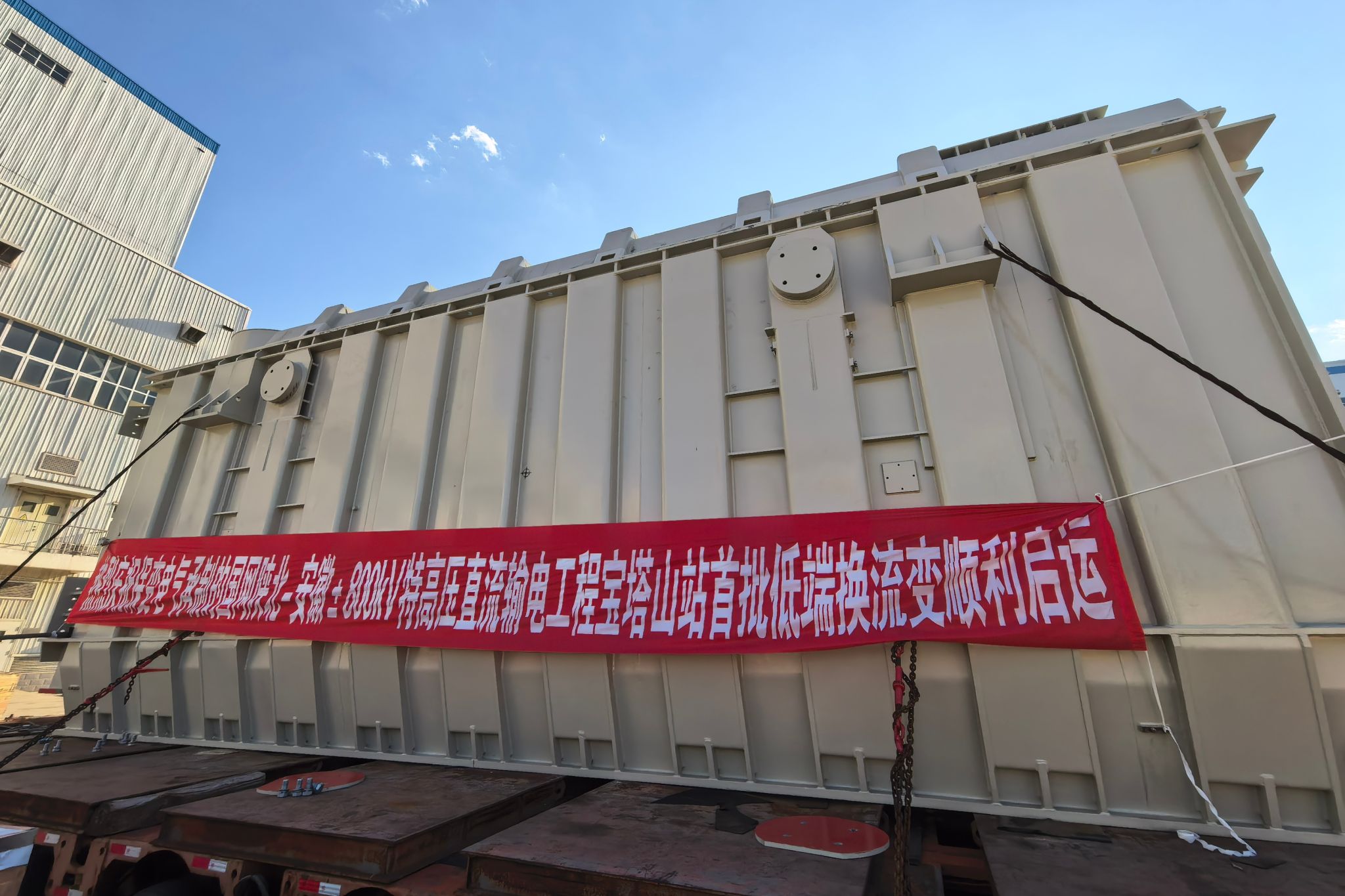 近日,保變電氣承制的國網陜北-安徽±800kV特高壓直流輸電工程(以下簡稱“陜皖工程”)寶塔山換流站首批4臺換流變從秦變分公司發(fā)運。