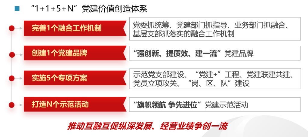 發(fā)揮示范帶動作用。開展“旗幟領航 爭先進位”黨建示范活動,豐富黨建與業(yè)務工作深度融合的載體,有力推進“強創(chuàng)新、提質效、建一流”黨建品牌創(chuàng)建在基層黨組織落地見效,達到基層組織“強”、先鋒作用“顯”、品牌特色“亮”的黨建示范效果。