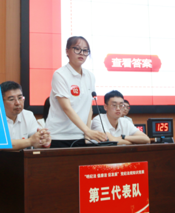 必答環節,各代表隊選手依次答題,選手沉著應對、對答如流,向觀眾展示了新時代黨員干部厚積薄發、力爭上游的精神風采;搶答環節將活動氣氛推向了高潮,在搶答器的“催促下”,在計時器的“見證下”,在分值的“壓力下”,形成“你追我趕”緊張而又熱烈的場面,各代表隊選手們快速而準確的回答贏得了場下觀眾的陣陣掌聲。風險環節,各代表隊不畏挑戰、你追我趕,氣氛緊張激烈。整場比賽高潮迭起、精彩紛呈,選手們冷靜思考、密切配合,展現出豐富的紀法知識儲備和良好的團隊協作精神。