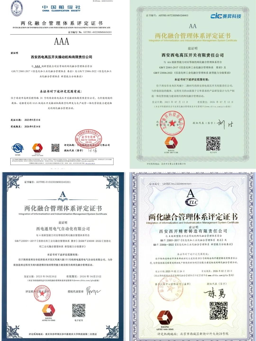 近日,中國西電所屬西開有限、西電操動機構、西電通用、西開鑄造分別榮獲國家工信部授權頒發的“兩化融合管理體系評定”證書,標志著企業在推進信息化與工業化深度融合方面邁上新臺階。