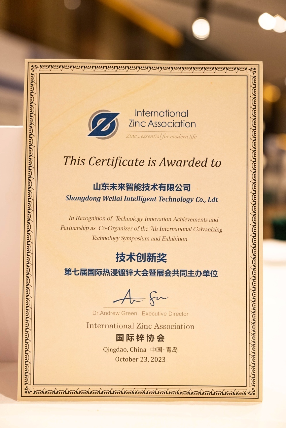 10月23日,第七屆國際熱鍍鋅大會暨展覽會在青島開幕。大會由山東電工電氣所屬山東未來智能技術有限公司共同主辦,國際鋅協會、歐洲鍍鋅協會,美國鍍鋅協會、俄羅斯鋅發展中心、亞太鍍鋅協會全面參與。未來智能應邀參加大會并作開幕致辭,榮獲2023年度技術創新獎。