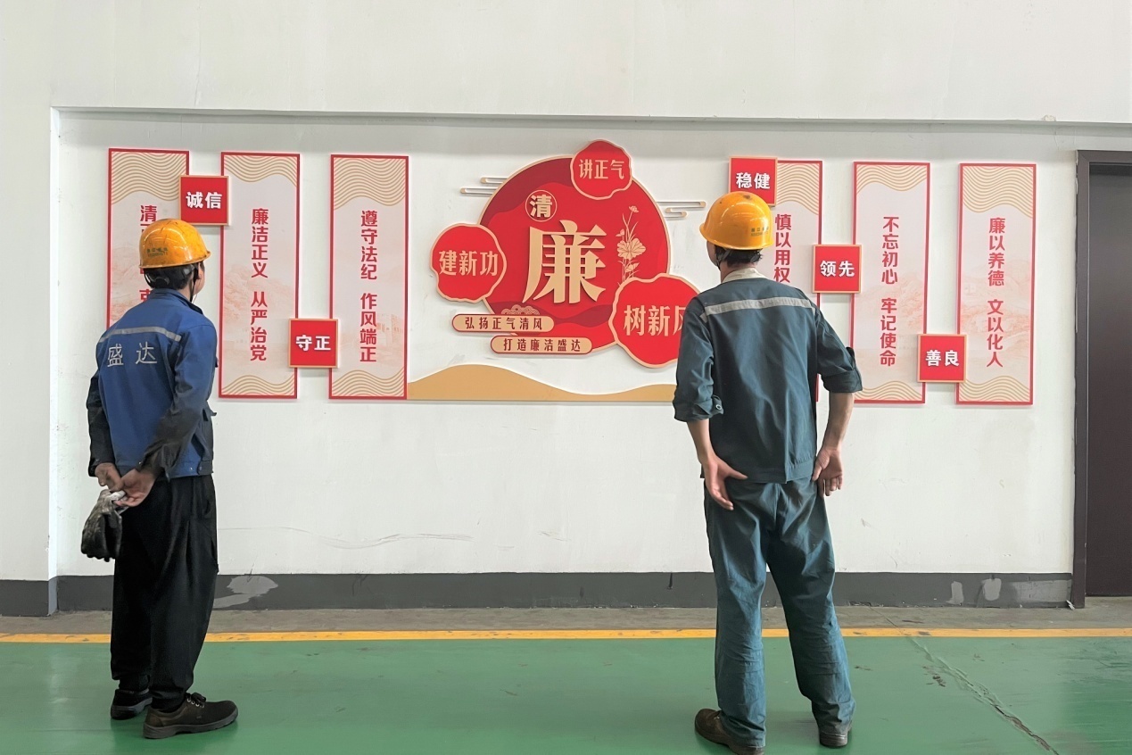 浙江盛達立足3個廠區文化特色打造辦公清廉廊道、車間廉潔步道、廉潔文化墻等廉潔教育場景,并嵌入式植入廉潔景觀、廉潔讀書角等“N個微陣地”,形成處處見廉、抬眼望廉、時時思廉的“3+N”廉潔文化建設矩陣。重慶順泰以“三個表率、四個有我”精神為核心,突出“做廉潔從業的表率”,打造視覺識別系統,實現順泰、瑜煌兩廠區廉潔標識標語全覆蓋。電工時代、山東日立堅持廉潔理念、精益文化上墻面、上桌面,形成立體式文化宣傳布局。