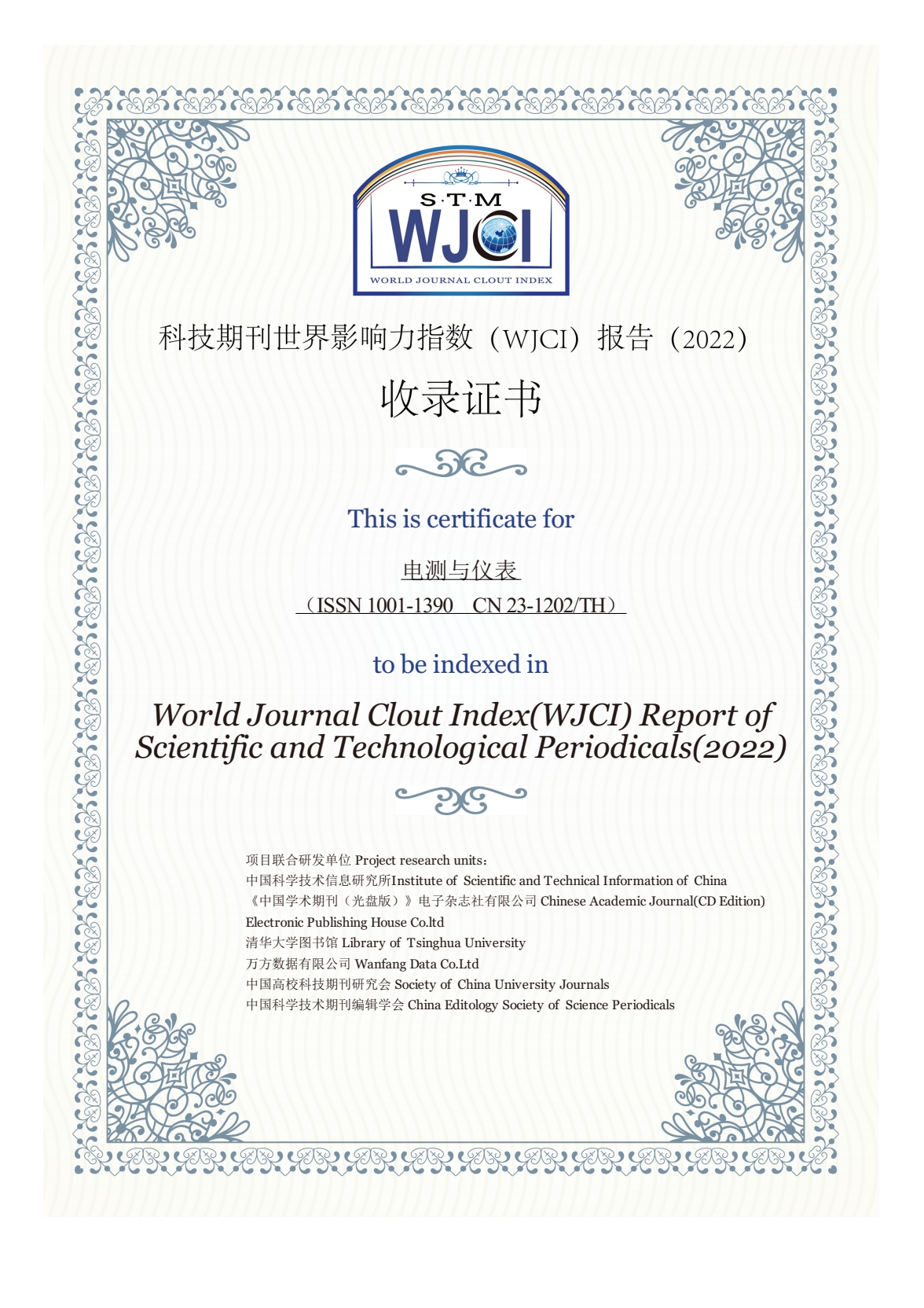 (1)2021年,《電測與儀表》首次入選《科技期刊世界影響力指數(WJCI)報告》;2022年,再次入選;