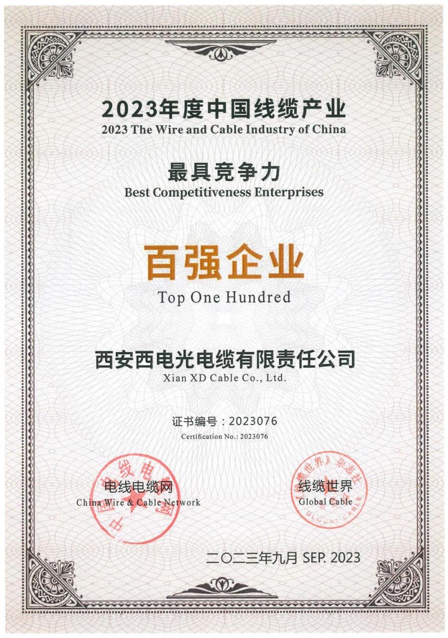 近日,以“強鏈謀局 聚智發(fā)展”為主題的2023年中國電線電纜行業(yè)大會發(fā)布了“2023年度中國線纜產(chǎn)業(yè)最具競爭力企業(yè)”名單。中國西電集團所屬西電光電纜入選“中國線纜產(chǎn)業(yè)最具競爭力企業(yè)100強”榜單。