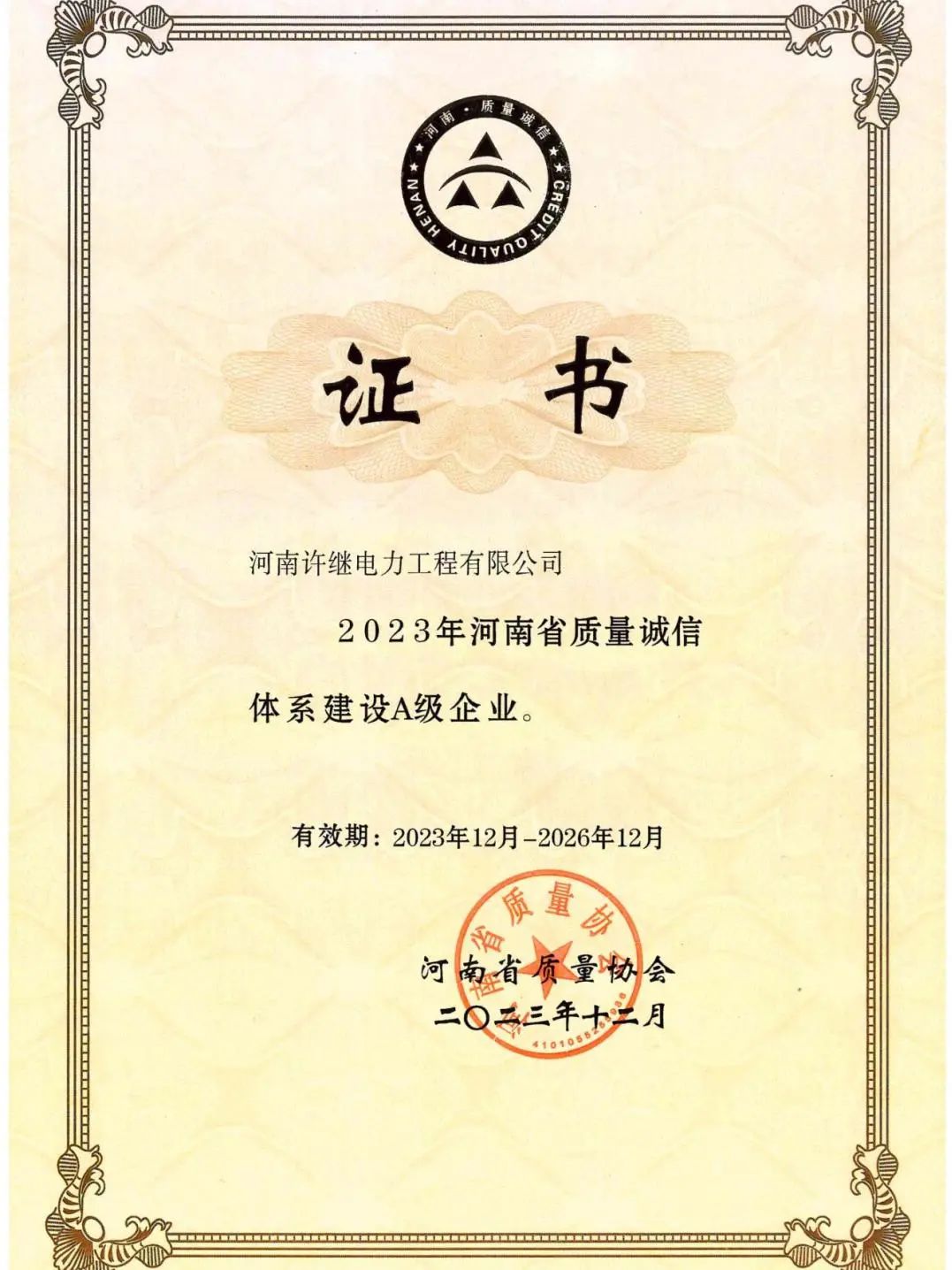 近日,河南省質(zhì)量協(xié)會發(fā)布《關(guān)于公布2023年度河南省質(zhì)量誠信體系建設A等企業(yè)名單的通知》,許繼集團電力工程公司成功入選2023年度質(zhì)量誠信體系建設A級企業(yè)。