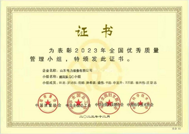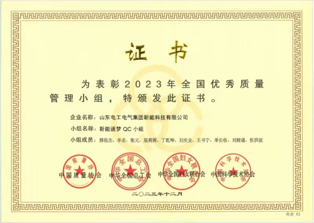 近日,2023年中國質(zhì)量協(xié)會年會暨第二屆全球追求卓越大會在京召開,中國電氣裝備所屬山東電工電氣2個QC小組獲評“2023年全國優(yōu)秀質(zhì)量管理小組”。