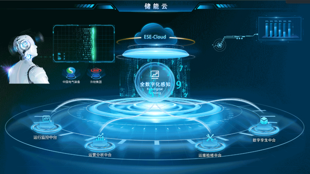2023年,許繼電氣充分發(fā)揮軟件業(yè)務(wù)引領(lǐng)作用,發(fā)布了許繼ESE-Cloud儲(chǔ)能云平臺(tái),打造運(yùn)行監(jiān)控、運(yùn)營分析、運(yùn)維檢修、數(shù)字孿生4大類業(yè)務(wù)中臺(tái),自建30+微應(yīng)用,支持超100座儲(chǔ)能站點(diǎn)的同時(shí)接入,助力打造“站+云+孿”一體化全數(shù)字儲(chǔ)能體系,實(shí)現(xiàn)多源儲(chǔ)能資源靈活高效聚合管控,促進(jìn)數(shù)字能源生態(tài)構(gòu)建,提高儲(chǔ)能數(shù)字化、智能化水平。