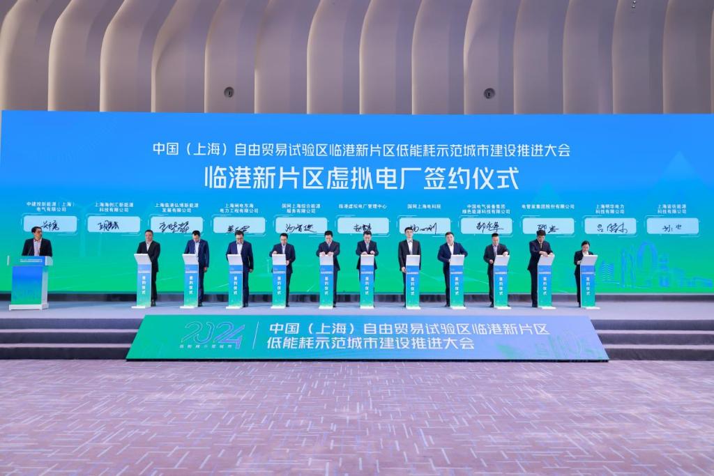 大會(huì)發(fā)布了綠能公司主要參與的《臨港新片區(qū)低能耗示范城市建設(shè)行動(dòng)計(jì)劃》《臨港新片區(qū)推動(dòng)新型儲能示范應(yīng)用引領(lǐng)產(chǎn)業(yè)創(chuàng)新發(fā)展實(shí)施方案》《臨港新片區(qū)新型電力系統(tǒng)建設(shè)行動(dòng)方案白皮書》《臨港新片區(qū)虛擬電廠精準(zhǔn)響應(yīng)實(shí)施方案、管理辦法》,助力臨港新片區(qū)打造成在全國有示范引領(lǐng)性的低能耗與經(jīng)濟(jì)高速發(fā)展同步推進(jìn)的樣板。會(huì)上,臨港新片區(qū)虛擬電廠管理中心正式揭牌,首批共有包括綠能公司在內(nèi)的11家聚合商集中簽約。
