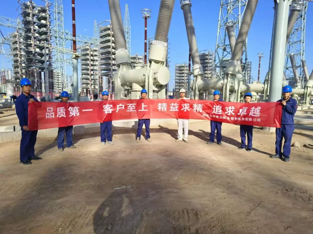 為確保項目的順利實施,西開電氣首次在800kV罐式斷路器安裝現(xiàn)場引入了智慧安裝管控平臺,精心選派了一批由經(jīng)驗豐富的技術(shù)骨干組成的安裝團隊趕赴現(xiàn)場,并制定了詳盡的《重大工程策劃書》及《現(xiàn)場安裝進度計劃》。同時,西開電氣黨委高度重視,黨委委員、副總經(jīng)理孫飛舟多次赴現(xiàn)場與業(yè)主、監(jiān)理及安裝單位溝通協(xié)調(diào),主動加強了現(xiàn)場安裝質(zhì)量全過程管控力度,規(guī)范了現(xiàn)場安裝團隊嚴格按照設(shè)計圖紙、工藝質(zhì)量標(biāo)準進行施工的要求,確保了安裝進度與質(zhì)量在“一次干好、一次干對”的前提下同步推進。在交流系統(tǒng)及相關(guān) 750千伏接入系統(tǒng)調(diào)試階段,西開智慧服務(wù)黨總支積極組織相關(guān)專家、研發(fā)人員及現(xiàn)場調(diào)試人員緊密協(xié)作,共同分析調(diào)試數(shù)據(jù),經(jīng)過不懈努力,設(shè)備順利通過了5輪次C2級背對背電容器組開合試驗,為工程的穩(wěn)定運行提供了有力保障。