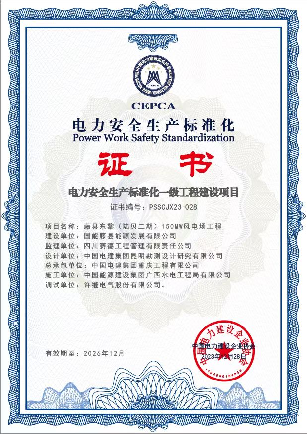 2023年,合計完成170個工程項目建設(shè)、調(diào)試,其中110kV及以上整站設(shè)備集成建設(shè)項目86個,35kV整站設(shè)備集成項目20個。完成廣西國能藤縣四座升壓站設(shè)備集成項目建設(shè),實現(xiàn)許繼預(yù)裝式變電站在藤縣能源互聯(lián)通道中全覆蓋;其中參建的藤縣東黎(陸貝二期)150MW風電場工程榮獲“電力安全生產(chǎn)標準化一級工程建設(shè)項目”獎,代表著該項目在安全生產(chǎn)標準化建設(shè)方面達到行業(yè)最高標準,標志著公司安全生產(chǎn)管理精細化提升邁上新臺階,也是市場和客戶對我們不懈努力的充分肯定。