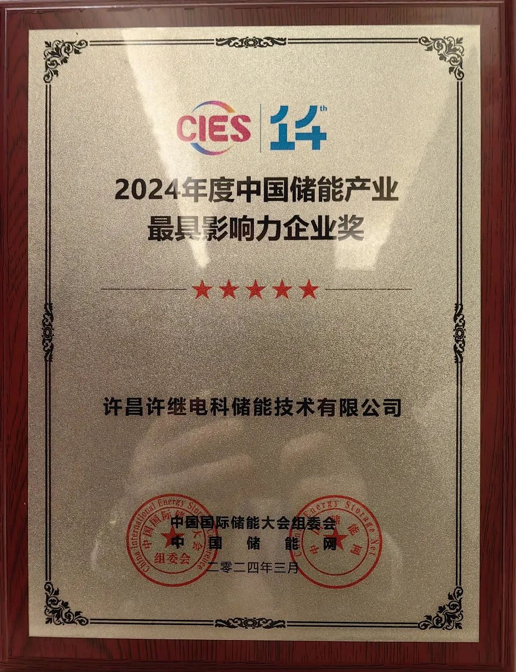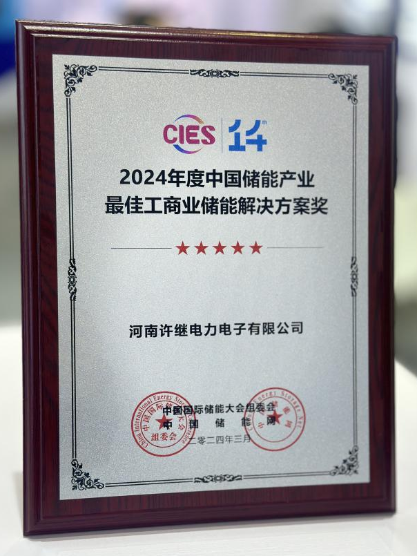 在中國儲能產(chǎn)業(yè)最具影響力系列獎項頒獎盛典上,許繼集團電科儲能公司榮獲“2024年度中國儲能產(chǎn)業(yè)最具影響力企業(yè)獎”,許繼電氣電力電子公司榮獲“2024年度中國儲能產(chǎn)業(yè)最佳工商業(yè)儲能解決方案獎”和“2024年度中國儲能產(chǎn)業(yè)功勛人物獎”。