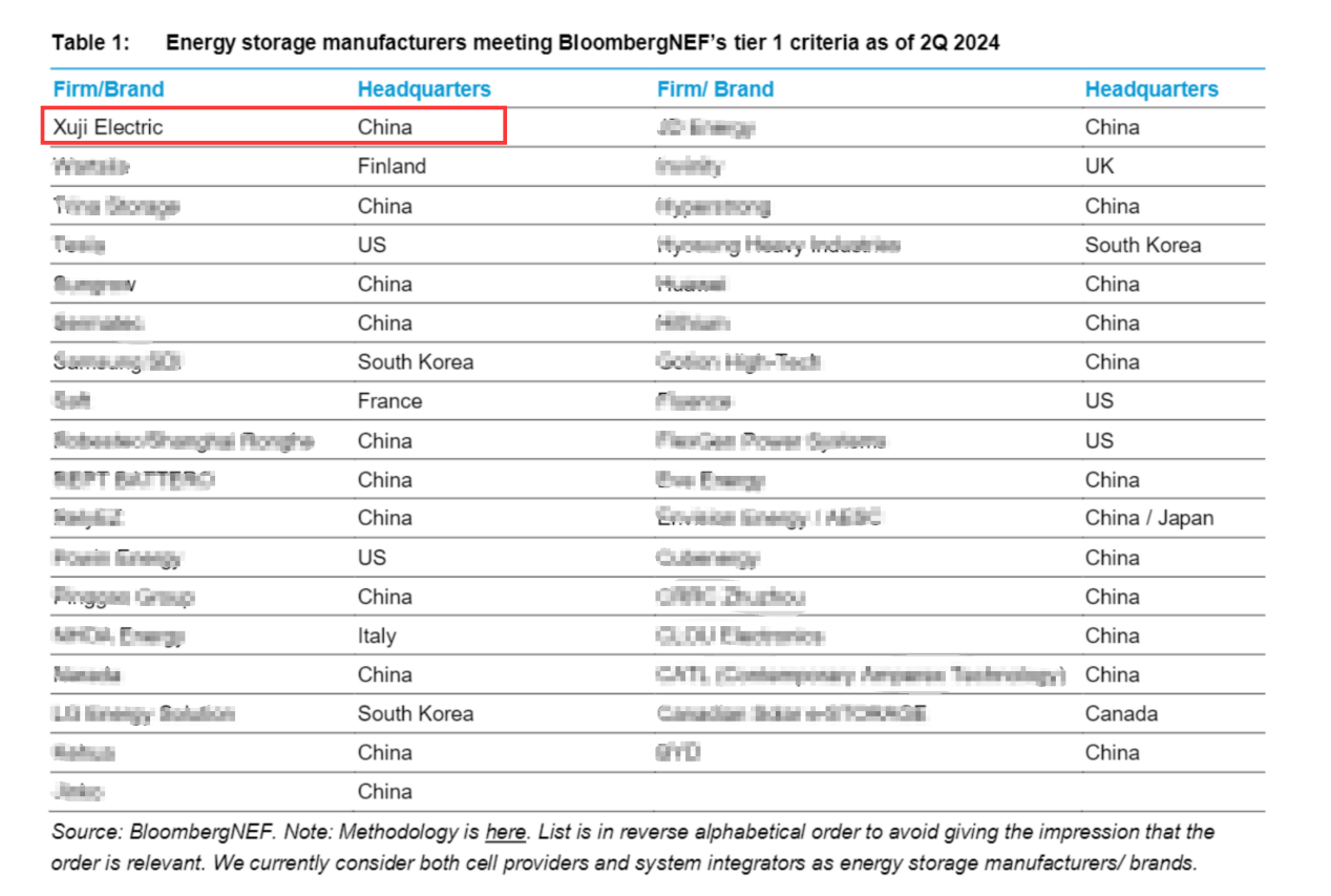 近日,全球知名研究機構(gòu)彭博新能源財經(jīng)(BloombergNEF–BNEF)官宣發(fā)布2024年第二季度全球一級儲能廠商榜單Tier 1《《BNEF Energy Storage Tier 1 List 2Q 2024》》,許繼電氣憑借在儲能領(lǐng)域雄厚實力榮登榜單!