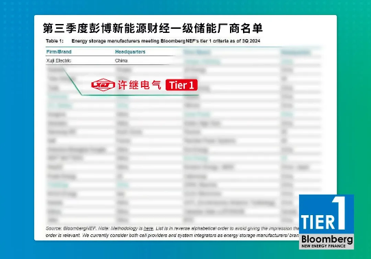 近日,全球知名研究機構(gòu)彭博新能源財經(jīng)(BNEF)發(fā)布2024年第三季度全球Tier1一級儲能廠商榜單(BNEF Energy Storage Tier 1 List 3Q 2024),許繼電氣憑借高效可靠的儲能產(chǎn)品、卓越的技術和雄厚的企業(yè)實力,在競爭激烈的儲能廠商中脫穎而出,再次榮登Tier 1榜單。