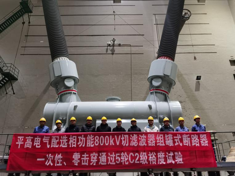 近日,由河南平高電氣股份有限公司自主研發(fā)的配選相裝置的800kV切濾波器組罐式斷路器在西安高壓電器研究院一次性順利通過(guò)5輪C2級(jí)裕度試驗(yàn)和選相合閘試驗(yàn)驗(yàn)證,這標(biāo)志著配選相裝置的800千伏濾波器組罐式斷路器研制成功,實(shí)現(xiàn)了首輪關(guān)合電流由10kA到20kA的重大突破,是世界首家一次性、零擊穿下通過(guò)該試驗(yàn)的生產(chǎn)廠家。