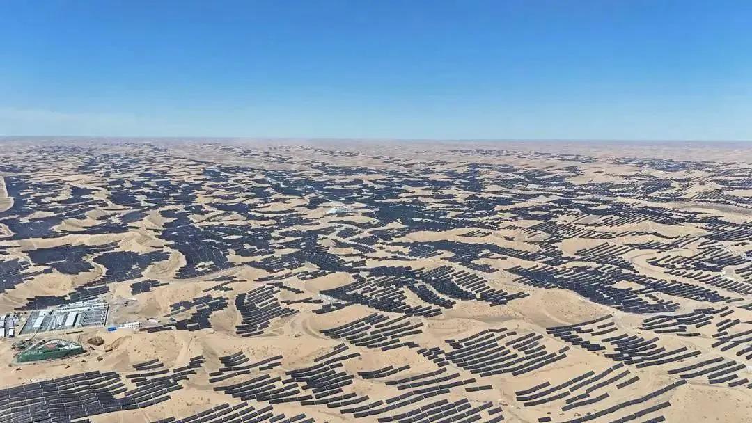 新疆米東350萬千瓦光伏項(xiàng)目是國(guó)內(nèi)單體容量最大的沙漠光伏項(xiàng)目,位于烏魯木齊市米東區(qū)北部沙漠,占地面積約20萬畝,利用小時(shí)數(shù)1740h,年發(fā)電量60.9億千瓦時(shí),相當(dāng)于300萬戶家庭一年的用電量。項(xiàng)目投運(yùn)后,每年可節(jié)約原煤194.88萬噸,減少二氧化碳排放量607.17萬噸,對(duì)加快當(dāng)?shù)啬茉唇Y(jié)構(gòu)優(yōu)化、推動(dòng)電力市場(chǎng)建設(shè)具有重要意義。