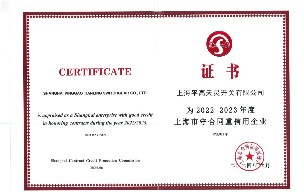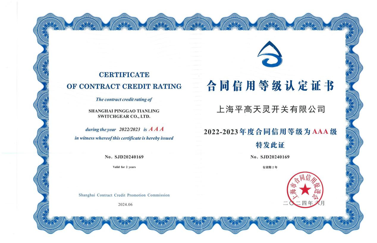 7月26日,從平高電氣所屬上海平高天靈開(kāi)關(guān)有限公司(以下簡(jiǎn)稱“上海平高”)傳來(lái)喜訊,上海市合同信用促進(jìn)會(huì)公布了2022-2023年度上海市守合同重信用評(píng)定的結(jié)果,上海平高獲得守合同重信用企業(yè)和合同信用AAA級(jí)企業(yè)證書(shū),這是上海平高連續(xù)5屆榮登榜單。