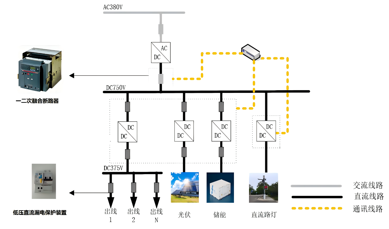 目前,該項目的樣機已在雄安商務(wù)服務(wù)中心低壓直流配網(wǎng)建設(shè)工程現(xiàn)場成功應(yīng)用,并在低壓直流總進線側(cè)安裝了一二次融合智能化低壓直流斷路器,低壓直流漏電保護裝置也順利接入用戶側(cè)配電箱。此外,項目研究成果還擴展至雄安新區(qū)中交未來科創(chuàng)城、雄安新區(qū)王家寨村互助會以及南京交直流混合配電工程技術(shù)研究中心等多個示范項目,展現(xiàn)了其廣泛的適用性和良好的應(yīng)用前景。