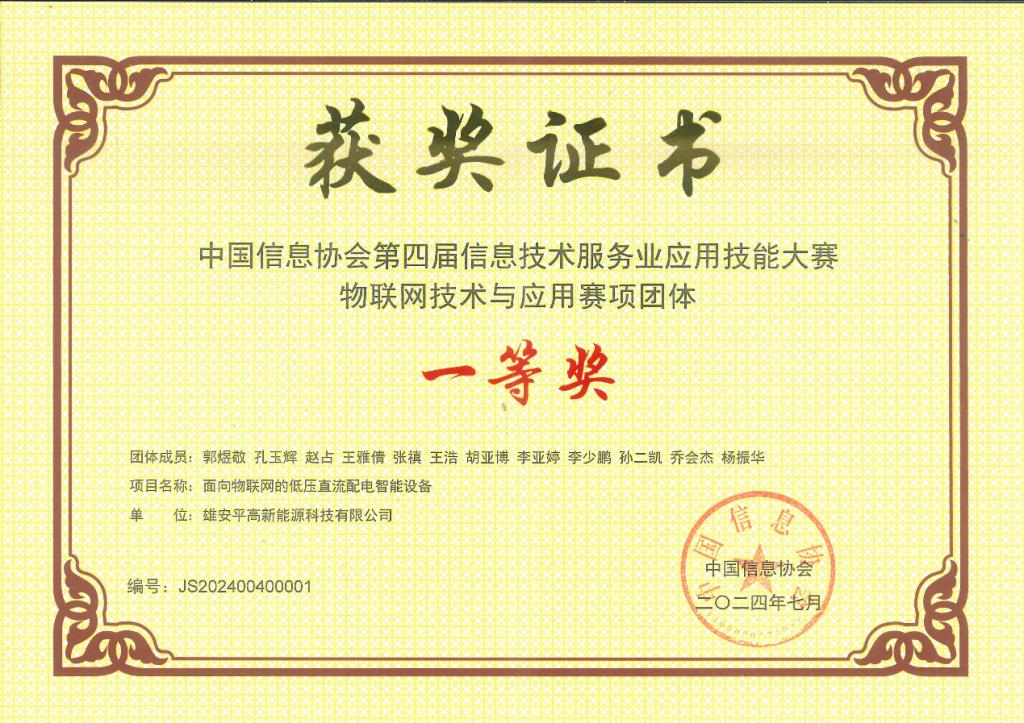 近日,中國信息協(xié)會在北京隆重舉辦了第四屆信息技術(shù)服務(wù)業(yè)應(yīng)用技能大賽頒獎會,雄安平高新能源科技有限公司(以下簡稱“雄安平高”)憑借其在物聯(lián)網(wǎng)技術(shù)領(lǐng)域的創(chuàng)新應(yīng)用,申報的《面向物聯(lián)網(wǎng)的低壓直流配電智能設(shè)備》項目脫穎而出,榮獲一等獎。這是繼2024年第六屆全國設(shè)備管理與技術(shù)創(chuàng)新成果一等獎后,雄安平高再次獲得的行業(yè)高度認可。