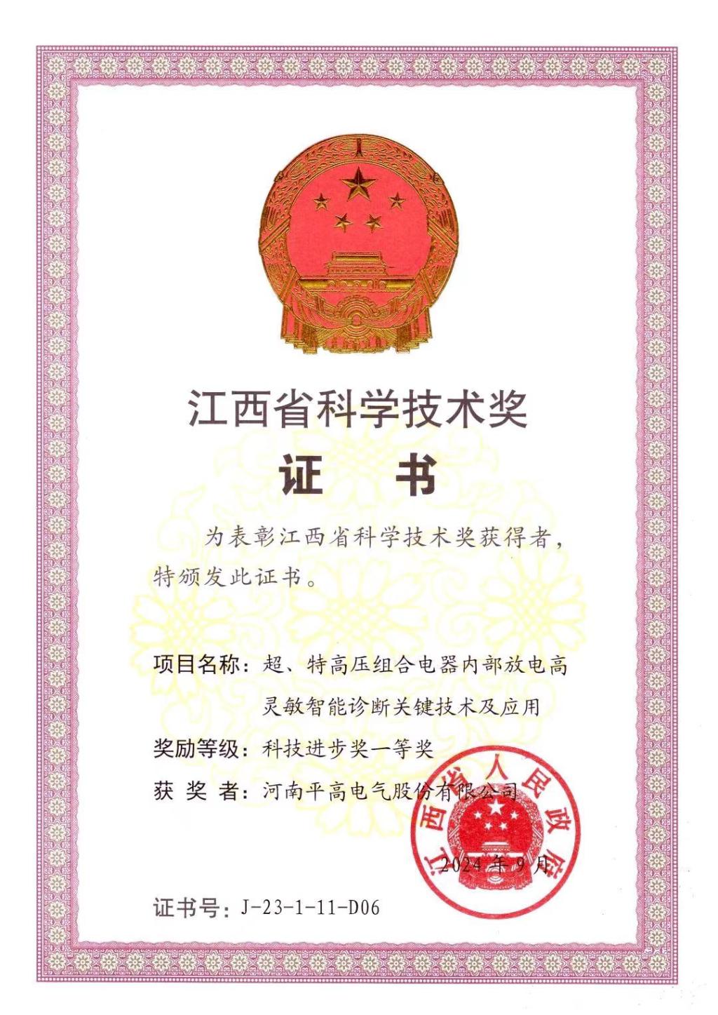 近日,平高電氣參與申報(bào)的《超、特高壓組合電器內(nèi)部放電高靈敏智能診斷關(guān)鍵技術(shù)及應(yīng)用》項(xiàng)目榮獲江西省科技進(jìn)步獎(jiǎng)一等獎(jiǎng)。