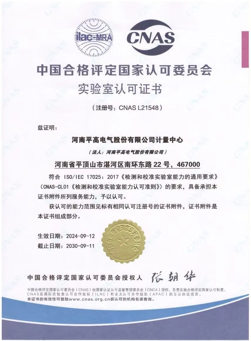 近日,平高電氣計(jì)量檢測中心順利通過中國合格評定國家認(rèn)可委員會(CNAS)認(rèn)可,獲得CNAS認(rèn)可標(biāo)識和認(rèn)可證書(注冊號為CNAS L21548),標(biāo)志著平高電氣計(jì)量檢測中心達(dá)到國際互認(rèn)標(biāo)準(zhǔn),成為第三方獨(dú)立實(shí)驗(yàn)室,為計(jì)量業(yè)務(wù)市場化運(yùn)營打下堅(jiān)實(shí)基礎(chǔ)。