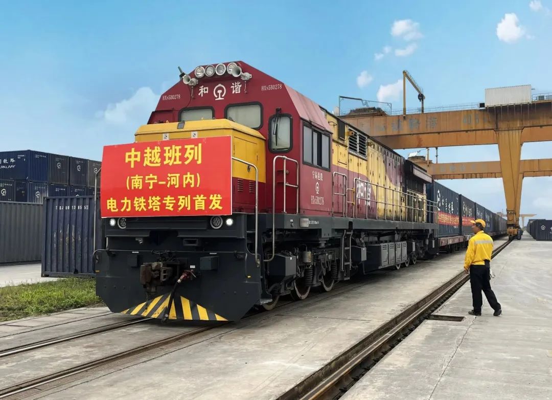 3月8日,中越(南寧-河內(nèi))班列電力鐵塔專列首發(fā)儀式在廣西南寧舉行,山東電工電氣重慶順泰生產(chǎn)的越南南定一號火力發(fā)電廠至清化500千伏輸電線路工程列車整裝待發(fā),即將駛出國門到達(dá)越南首都河內(nèi),這是廣西首次開行電力鐵塔專列,為越南電力基礎(chǔ)設(shè)施建設(shè)提供運(yùn)力保障。
