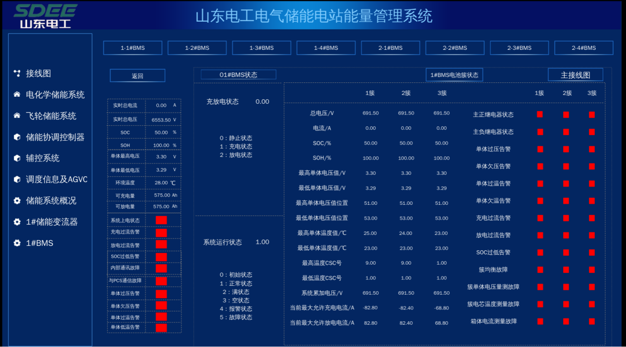 儲能電站能量管理系統(tǒng)(EMS)由山東電工電氣所屬數(shù)字科技自主研制、升級,通過國家級新產(chǎn)品鑒定,達到國際先進水平。該產(chǎn)品采用面向服務的軟件體系架構(gòu),分為實時監(jiān)控、診斷預警、全景分析、高級控制等功能模塊,具備數(shù)據(jù)精準、安全可靠、標準開放、操作簡單等優(yōu)勢,已在德州臨邑、東營學堂等項目進行示范應用。
