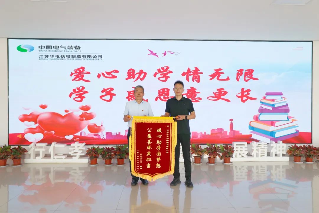 7月26日,山東電工電氣所屬江蘇華電“青苗愛心助學(xué)”活動(dòng)捐助的困難學(xué)子所在鄉(xiāng)鎮(zhèn)領(lǐng)導(dǎo)、六名困難學(xué)子將一面印有“暖心助學(xué)圓夢想,公益善舉顯擔(dān)當(dāng)”的錦旗送到江蘇華電,表達(dá)對捐資助學(xué)善舉的感謝。