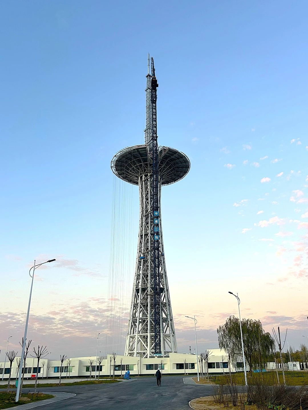 遠離城市的曠野之上,一座通體銀白的巨塔巍然聳立,與遠處的賀蘭山遙相呼應(yīng)。
